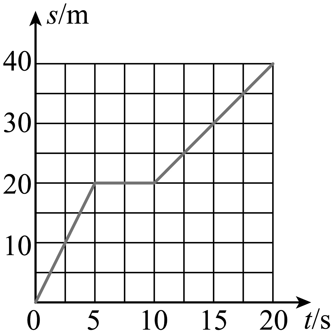 10、如图是某物体做直线运动时的路程随时间变化的图像,由图像判断下列说法正确的是( )A、15s时,物体通过的路程为30m B、整个20s时间内,物体的平均速度为2m/s C、物体在20s内都做匀速直线运动 D、物体在0~5s时间内的速度比10~20s内的速度小