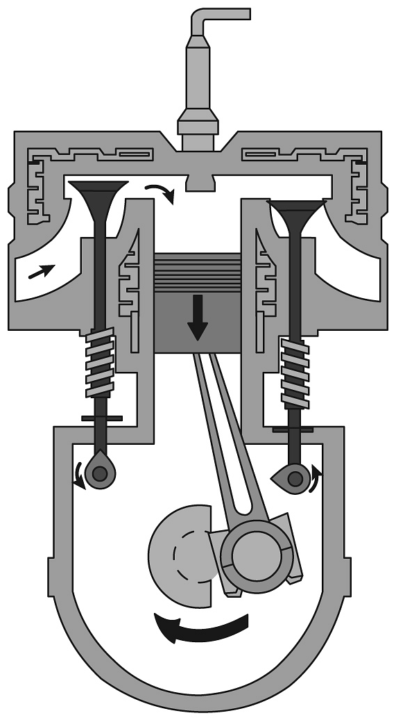 18、2024年4月20日,我国研制的全球首款本体热效率达53.09%的柴油机正式亮相世界内燃机大会,刷新了柴油机热效率的世界纪录。下图所示内燃机的四个冲程,气缸内气体的内能最小的是( )A、