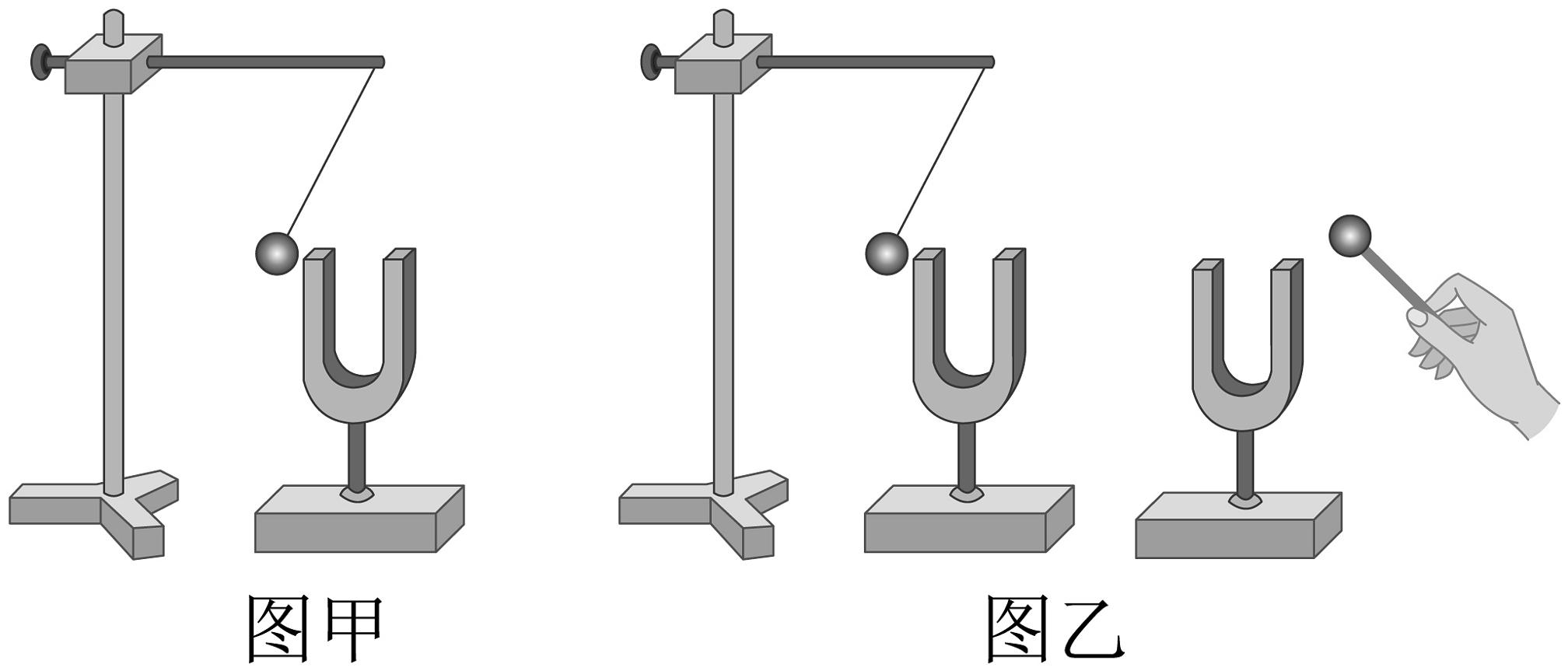 8、为研究声音是如何产生的,小明同学进行系列的实验研究。(1)、如图甲所示,用竖直悬挂的乒乓球接触发声的音叉时,乒乓球会被弹起,这个现象说明 , 该实验运用了物理研究中常见的(填研究方法);(2)、如图乙所示,敲击右边的音叉,左边完全相同的音叉把乒乓球弹起,右边音叉的振动靠(填传声介质)传给了左边的音叉;(3)、若在月球上做上述两个实验,实验乒乓球会弹起。