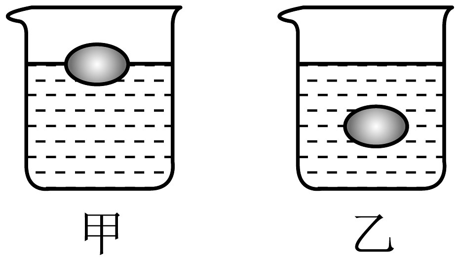 19、现有甲、乙两个完全相同的容器,盛有体积相同的不同液体,把一个鸡蛋分别放入两容器中的情形如图所示。鸡蛋在甲、乙两杯液体中所受的浮力分别为F甲浮和F乙浮 , 两杯液体对容器底部的压强分别是p甲和p乙 , 以下判断正确的是( )A、F甲浮=F乙浮 , p甲>p乙 B、F甲浮=F乙浮 , p甲=p乙 C、F甲浮>F乙浮 , p甲>p乙 D、F甲浮<F乙浮 , p甲<p乙
