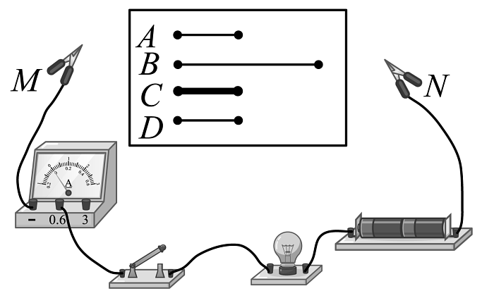 (3)分别将A和D两电阻丝接入如图电路中M、N两点间,电流表示数不相同,由此,初步得到的结论是:当长度和横截面积相同时,导体电阻跟有关;