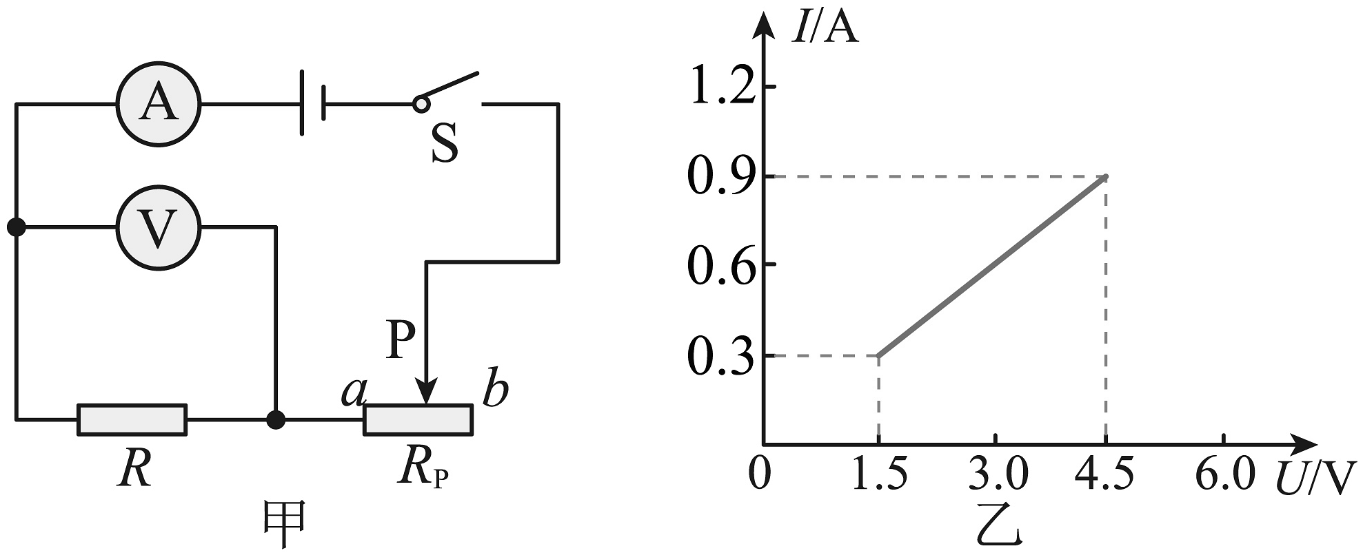 19、如图甲所示电路,电源电压保持不变,闭合开关S,滑动变阻器的滑片P从b端移到a端的过程中,电流表示数I与电压表示数U的关系如图乙所示。下列说法中( )