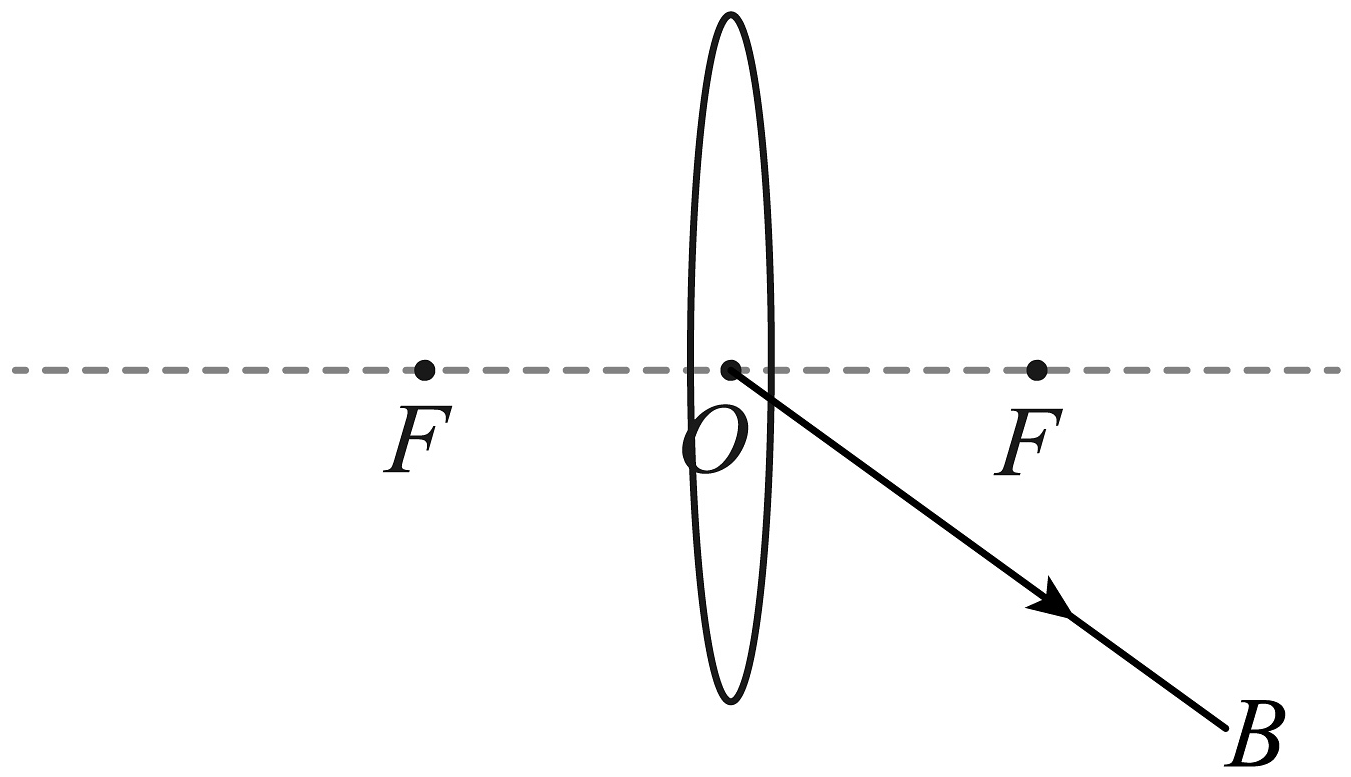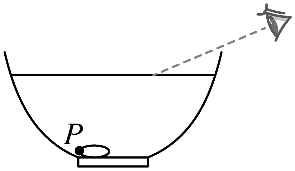2、(1)、请在图中画出光线OB对应的入射光线AO。(2)、如图所示,作出物体AB在平面镜中所成的像。(3)、如图所示,向碗中加水至图示位置,请画出人眼沿虚线方向刚好看到硬币上P点的光路图。