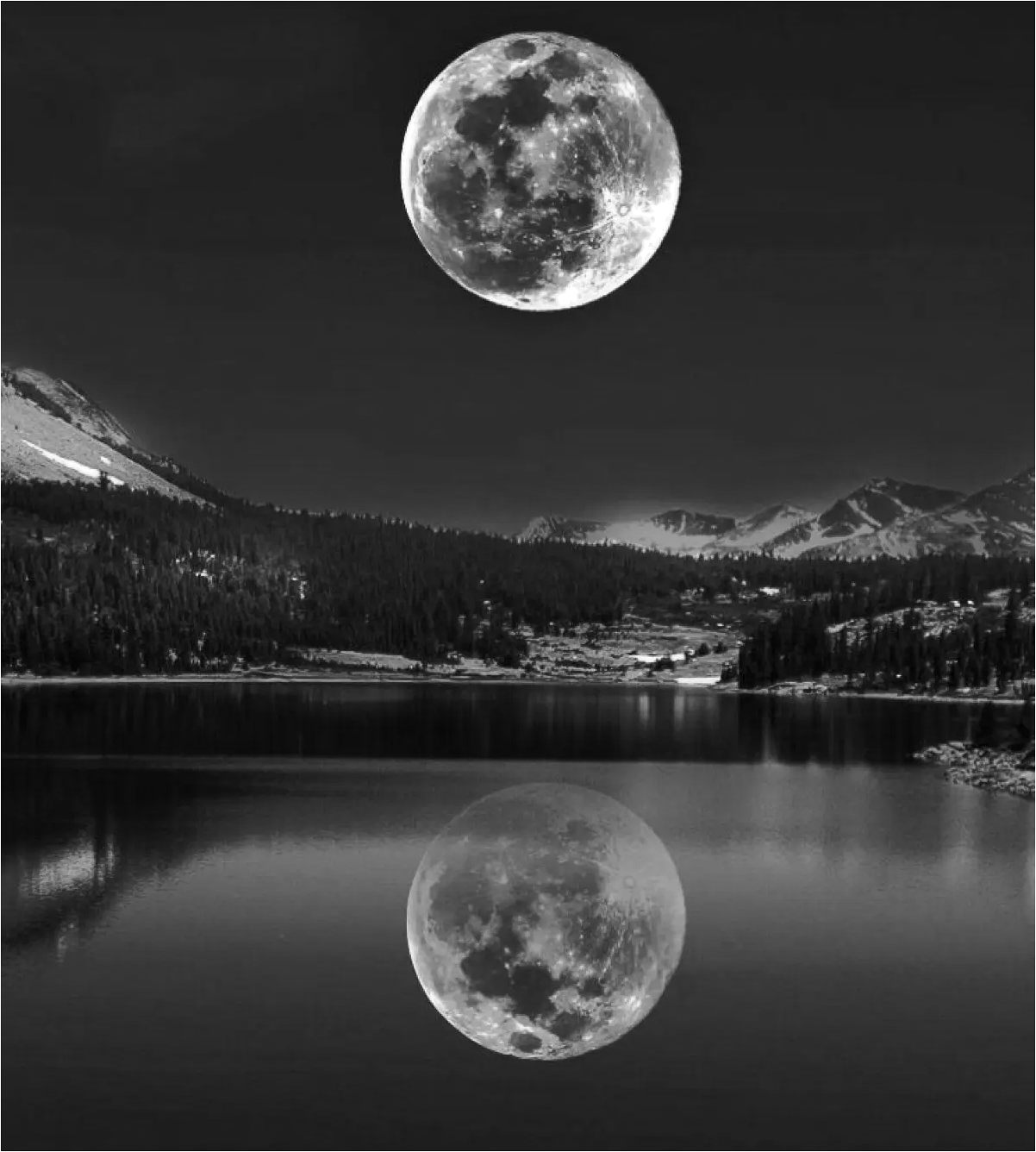 9、如图,是中秋拍摄的一幅天上月与水中月相映的美景。水中的月亮到水面的距离 水的深度;月满则亏,月偏食是由光的形成的。