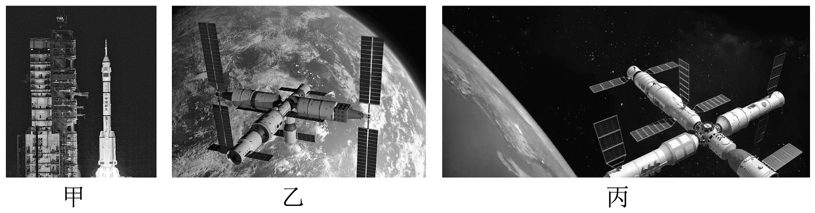 10、2024年10月30日4时27分,神舟十九号载人飞船成功发射,飞船与我国空间站顺利对接,对接后组合体以约90分钟的周期围绕地球运行。下列说法中正确的是( )A、图甲:火箭加速升空时,相对于火箭,航天员是运动的 B、图乙:对接过程中,以空间站为参照物,神舟十九号飞船是静止的 C、图丙:对接成功后,以空间站为参照物,神舟十九号飞船是运动的 D、图丙:对接成功后,以地球为参照物,组合体是运动的