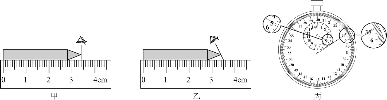 9、在测铅笔的长度时,甲、乙两种方式中正确的是图。如图丙所示,秒表的读数为s。