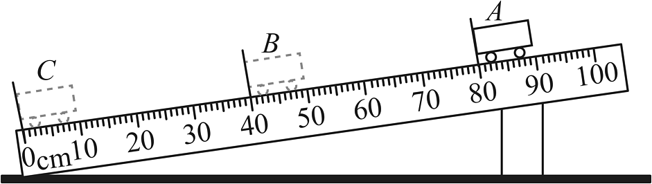 3、在如图所示的斜面上测量小车运动的平均速度,让小车从斜面的A点由静止开始下滑,分别测出小车到达B点和C点的时间,即可测出不同阶段的平均速度。(1)、该实验的原理是;(2)、本实验中为了减少时间测量误差,应该选用坡度(选填“较小”或“较大”)的斜面;(3)、如果小车从静止开始下滑,测得AC段的时间为4.2s,AB段的时间为2.2s,则小车通过BC段的路程为cm,平均速度是m/s;(4)、实验前必须学会熟练使用秒表,研究AC段的运动时,如果小车车身越过A了点才开始计时,则会使所测AC段的平均速度vAC偏(填“大”或“小”)。