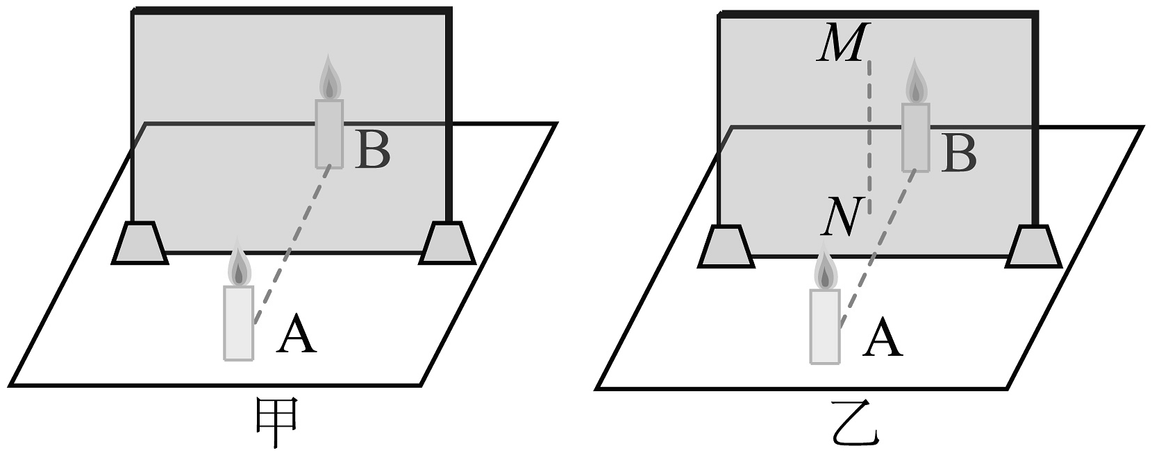 6、如图甲所示是小明探究“平面镜成像的特点”的实验装置,图中A、B是两段外形相同的蜡烛。(1)、选用透明的玻璃板代替平面镜,主要是利用玻璃板透明的特点,便于确定像的(选填“大小”、“距离”或“位置”);(2)、将玻璃板竖直立在水平桌面上,点燃蜡烛A放在玻璃板前2cm处,小明沿垂直板面方向将A以4cm/s的速度远离玻璃板,2s后放稳。则未点燃的蜡烛B与A相距cm,才能与A的像完全重合。蜡烛B能与A的像完全重合,这说明;(3)、为探究平面镜所成的像是实像还是虚像,将蜡烛B移去,在相同位置上放上光屏,光屏上(选填“能”或“不能”)承接到蜡烛A的像,说明平面镜所成的像;(4)、小明把蜡烛A向靠近玻璃板方向移动一段距离,会发现蜡烛A的像的大小(选填“变大”、“变小”或“不变”);(5)、实验结束后,小明想,若把玻璃板沿MN截成两部分,如图乙所示,并分别向两侧平移一小段距离,则蜡烛通过左右两部分玻璃板成像的情况:______。A、各成半个像,合起来成一个完整的像 B、都成完整的像,且两个像在不同位置 C、都成完整的像,且两个像在同一位置