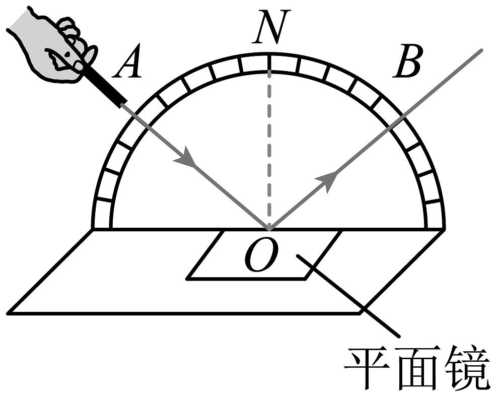 10、小燕同学探究“光的反射定律”时,激光笔发出的光线紧贴纸板入射,在纸板上形成如图所示的光路。列关于该实验的分析正确的是( )A、若光线沿BO入射,则反射光线沿OA射出 B、若入射光线AO靠近ON,则反射光线OB将远离ON C、若入射光线AO与ON重合,则不发生光的反射现象 D、为了使实验结论具有普遍性,应多次测量图中的反射角和入射角