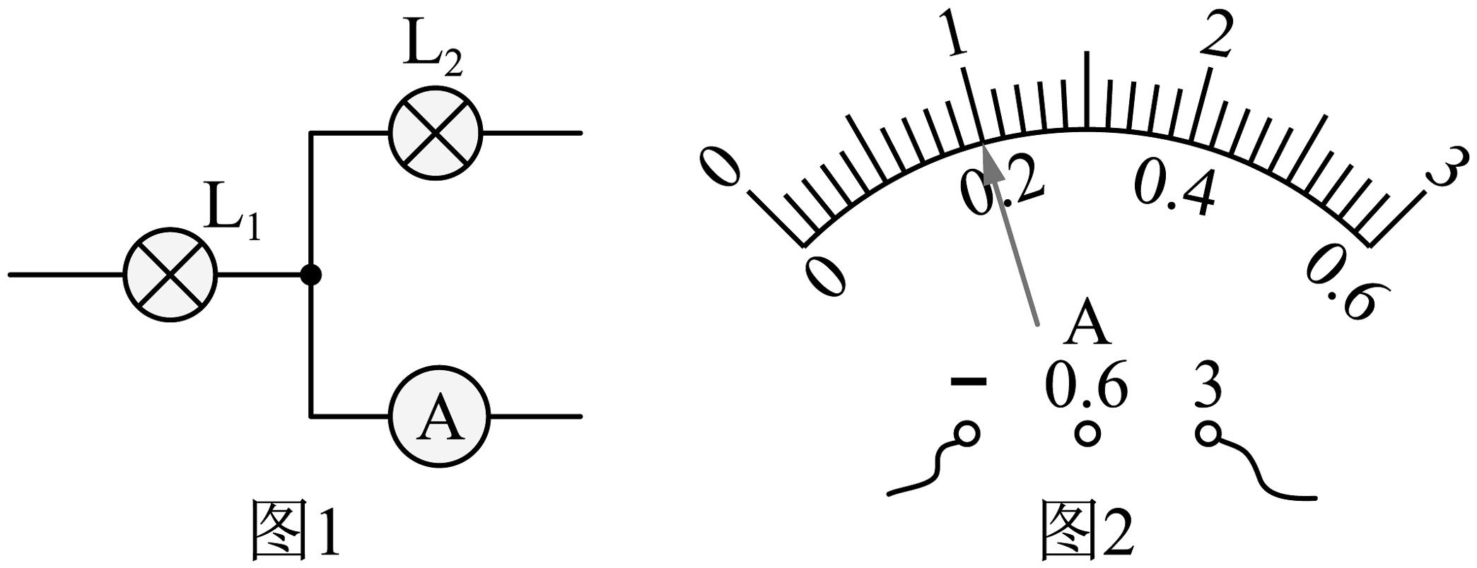 7、如图1是电路图中的一部分,已知流经灯泡的电流为0.6A,流经的电流为0.4A,电流表的示数如图2所示,则下列判断正确的是( )A、小灯泡和小灯泡是串联的 B、小灯泡和小灯泡是并联的 C、小灯泡在干路上 D、如果将小灯泡拧下来,仍发光