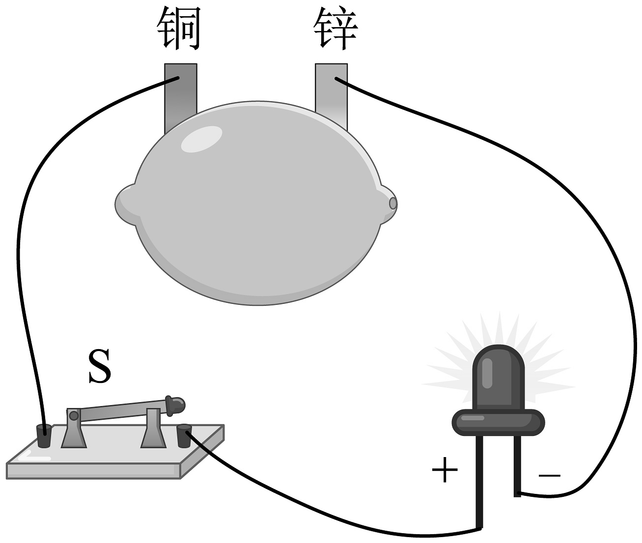 • 3、二极管由(选填“导体”、“绝缘体”或“半导体”)材料制成,在社会各领域应用广泛。小满同学在学习了二极管的相关知识后,将二极管与电流表串联起来,对电流表起保护作用,这是利用了二极管的特性。他又将铜片、锌片插入柠檬,制成柠檬电池。如图所示,闭合开关S,发光二极管发光,由图可知铜片是柠檬电池的极。