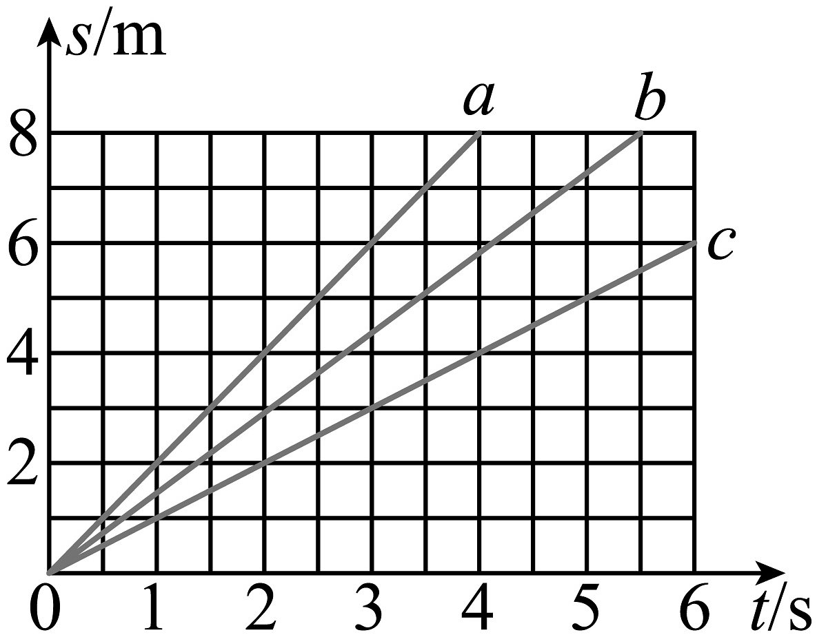 7、甲、乙两物体先后从同地沿同一方向做匀速直线运动,甲比乙先运动2s,甲运动6s时通过的路程为6m,此时甲、乙间的距离为2m。在如图所示的a、b、c三条图线中,乙的s﹣t图( )A、可能是图线a B、一定是图线b C、可能是图线b D、一定是图线c