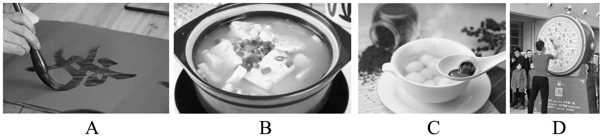 18、如图所示,是同学们拍摄的“中国年·中国味”活动情境,对涉及的物理知识解释正确的是( )A、墨迹未干的春联墨香四溢,说明分子间有引力 B、停止加热砂锅煲继续沸腾,说明汽化不需吸热 C、汤圆上方的“白气”是水蒸气吸热液化形成的 D、激昂欢快的迎新鼓声是敲鼓时鼓面振动产生的