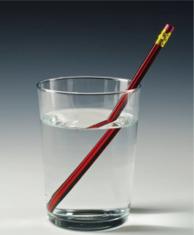 13、如图,铅笔斜插在水中,看见水中的铅笔向上弯折,解释这一现象的光路是A、