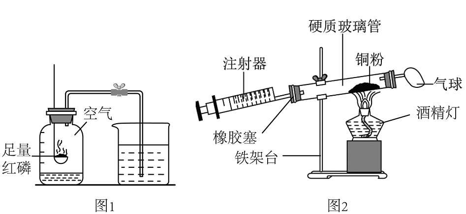 12、如图1是测定空气中氧气含量的装置,请结合图示回答下列问题:(1)、用图1测定氧气含量前必须。(2)、红磷燃烧反应的文字表达式为若将图1中实验药品红磷改为木炭,就达不到测量空气中氧气含量的目的,主要原因是生成了。(3)、某化学兴趣小组同学将红磷更换为足量的铜粉,利用图2所示装置继续测定空气中氧气的含量。该装置中的气球作用是。(4)、为了帮助同学们理解图1实验的原理利用传感器技术实时测定了图1实验过程中装置内的压强、温度和氧气浓度三条曲线随时间的变化趋势,如图3所示。试回答: