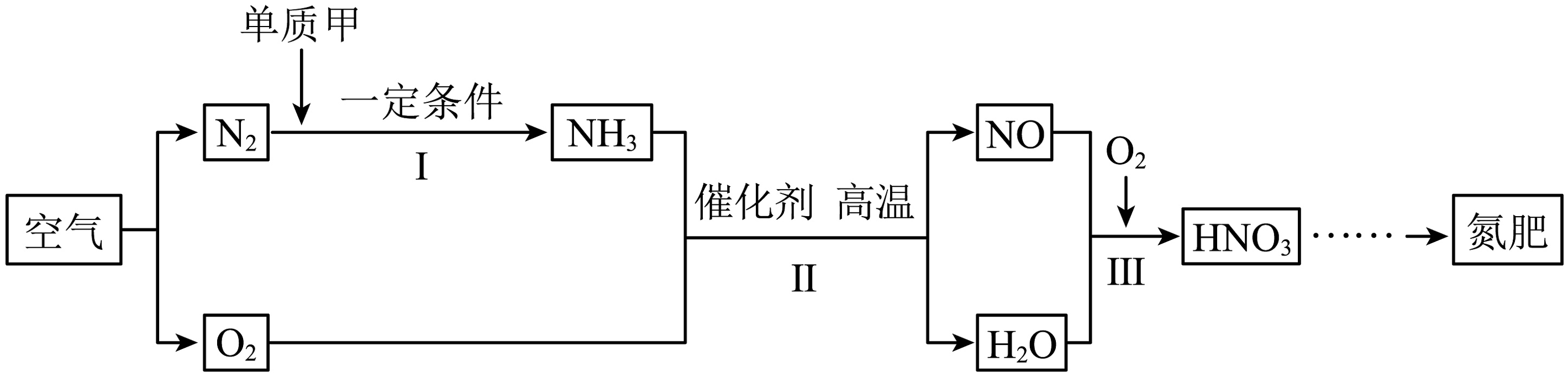 (3)、从应用角度:利用空气制取氮肥的流程如图所示:①反应Ⅰ中参加反应的单质甲为。(填化学式)