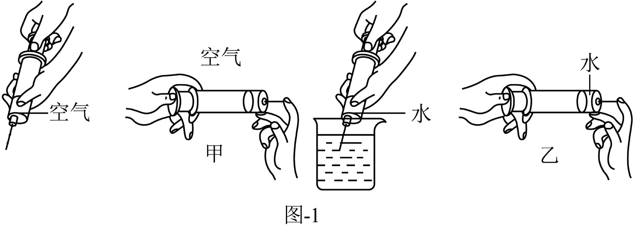 20、从微观的角度认识生活中的变化与现象是化学学科的特有思维方式。(1)、如图-1所示,用甲、乙两支大小相同的注射器,分别吸取等体积的空气和水,用手指顶住注射器末端的小孔,用相同大小的力,将栓塞慢慢推入。
