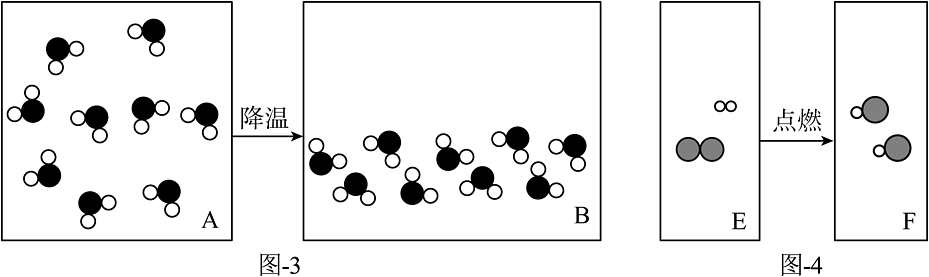 ③图-3“水蒸气液化”,图-4“氢气在氯气中燃烧”的微观变化示意图。“○”表示氢原子,“●”表示氧原子,“