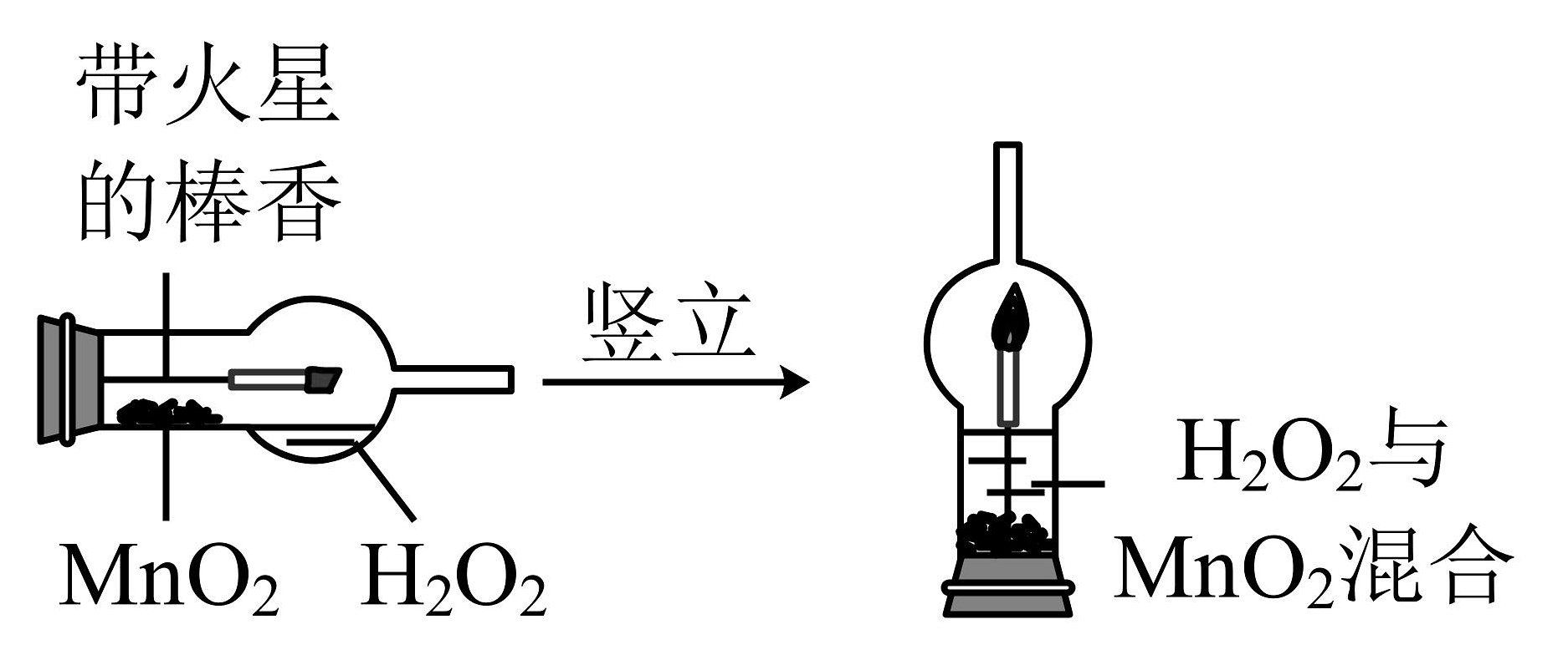 ①将一支球形干燥管水平放置,用滴管吸取3mL(密度为1g/mL))质量分数为5%的过氧化氢溶液加入干燥管的球泡内,再用药匙取0.2g二氧化锰粉末,加在干燥的进气管的管壁上;②点燃橡胶塞上固定的棒香后,塞紧干燥管并将其竖立,观察到带火星的棒香立即复燃。