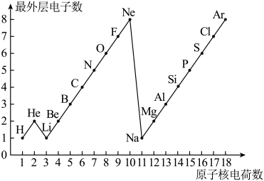 5、如图是1~18号元素原子最外层电子数与原子核电荷数的关系图.试回答:(1)、一个水分子共有个原子核,个质子.(2)、一个Mg2+核外共有 个电子,Cl-的最外层电子数和原子的最外层电子数相同.(3)、通过该图你能发现哪些规律?请写出其中一个:
