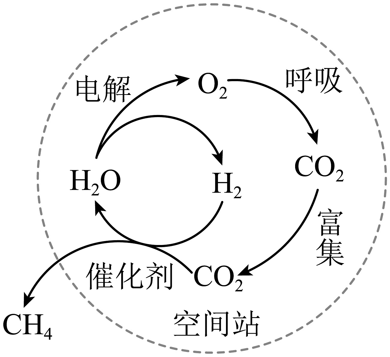 材料一 我国已成功实现在空间站中氧气和水等物质的“自产自销”。通过收集航天员尿液、汗液和呼出的水汽,通过反渗透膜净化处理,再生为饮用水,使得空间站水资源的利用率达85%。空间站利用太阳能电池板供电,实现氧气和水的再生(如图),该系统把水资源利用率提高到95%以上。