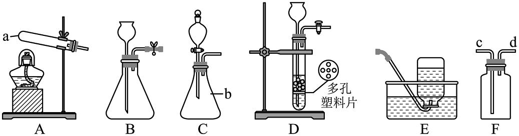 (3)使用A装置加热高锰酸钾制取氧气时,还需要添加的实验用品是。想要测量生成氧气的体积,应该先将F装置 , 然后在(填“c”或“d”)端接一个量筒。