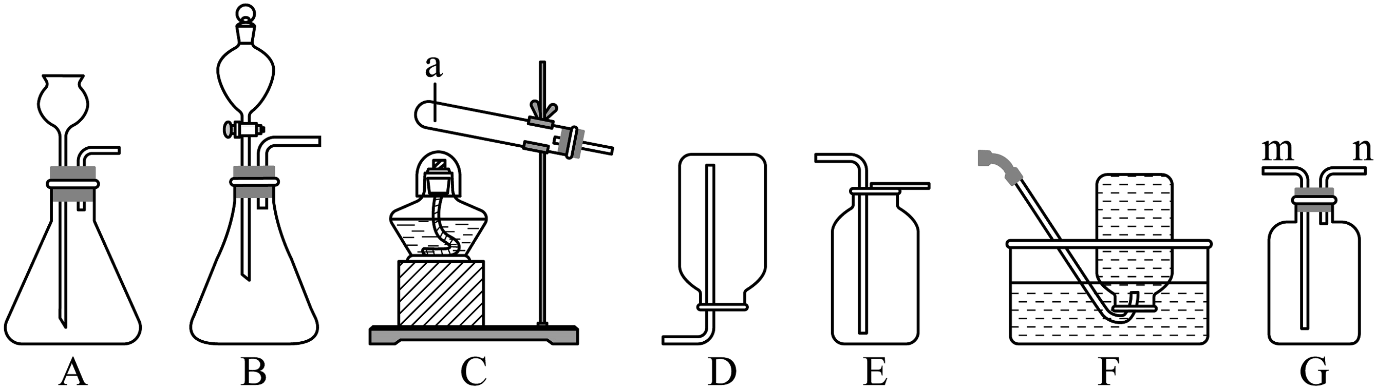 5、化学是一门以实验为基础的科学。根据下图回答问题。(1)、实验室用过氧化氢溶液和二氧化锰混合制取氧气的化学反应方程式为 , 用F装置收集氧气,当观察到的现象时再开始收集。(2)、甲烷是一种没有颜色、没有气味、难溶于水、密度比空气小的气体。实验室常用加热碱石灰(氧化钙和氢氧化钠固体的混合物)和醋酸钠固体制取甲烷气体,应选用的发生装置是(填标号,下同)。若用G装置收集时,则气体要从端通入。(3)、A、B装置都可以制取氧气、二氧化碳和氢气,若要控制液体滴加速率,获得平稳气流,应选择的发生装置是。(4)、生活中常用草酸溶液除铁锈和瓷砖上的污渍。草酸晶体加热会发生如下反应:H2C2O4·2H2OCO2↑+CO↑+3H2O。为检验分解后的产物,小赵设计了如下实验。