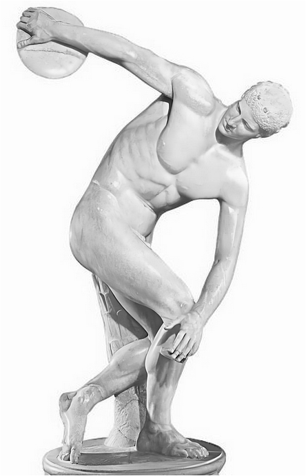 米隆作为雅典著名雕塑家,参加了大量运动会,观察体育运动员在竞技过程中的形体及瞬间动作,不断积累素材,记忆不同体态和身体结构特征及“美”的意识。