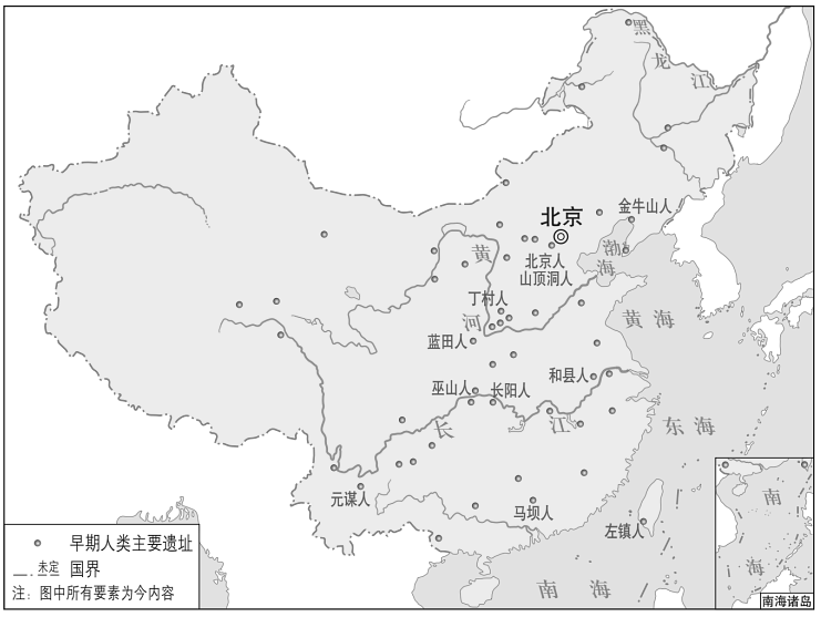 (1)从材料一看,我国早期人类遗址主要分布在哪些流域?其分布范围说明了什么?
