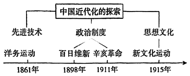 (1)根据材料一,指出面对外来侵略,国民态度的变化。并结合所学知识,简述“乃渐惊起”的表现。材料二:下面是19世纪末20世纪初的中国的近代化探索图。