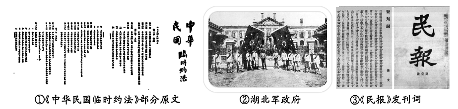 (2)请将材料二中①②③三幅图片,按照出现的先后顺序排列。《民报》发刊词中将同盟会的政治纲领阐发为哪一思想?这一思想对图②相关的重大事件起了什么作用?