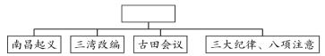 20、某同学在复习中国共产党的历史时绘制了如下思维导图,其中空白处应填写的主题是 ( )A、国共第一次合作实现 B、中国共产党的经济政策 C、根据地土地改革历程 D、中国共产党的军队建设