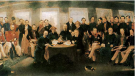 (1)、材料一中的英国军舰上签订了中国近代史上的第一个不平等条约,这个条约是什么?该条约的签订使中国社会性质发生了什么变化?(2)、这场近代化的开端是指什么事件?其在中国历史发展中有什么作用?(3)、材料三中这个伟大政党诞生有何意义?(4)、这些船见证了中华民族屈辱与抗争,从中我们可以得到哪些启示? -