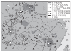 (4)、材料三 下面是中国工农红军长征路线示意图根据材料三,指出中国革命的中心发生了什么变化。