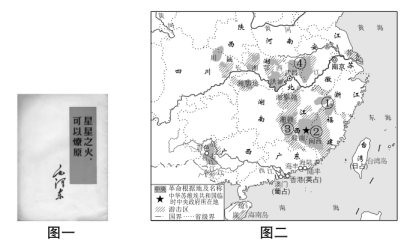 (1)、材料一中,孙中山指出实现中国“和平统一”的前提是什么?(2)、为实现“和平统一”,孙中山提出了什么重要的理论?国共两党为此作出了哪些努力?(3)、材料二根据材料二并结合所学知识回答,“星星之火”指的是什么?在图二中找出毛泽东同志首先点燃“星星之火”的位置。(写出序号即可)