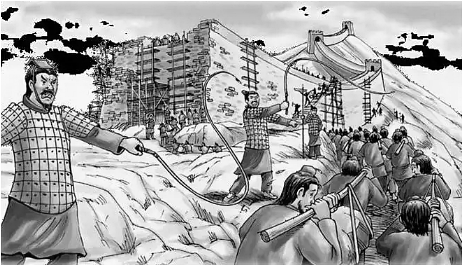 18、下图是“秦的暴政”的漫画再现,其具体反映的是( )A、秦朝兵役繁多 B、秦朝徭役繁重 C、秦朝刑法严苛 D、秦朝文字多样