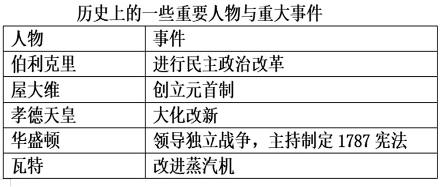 请从上表中选出两个你认为有共同点的历史人物,结合其事迹,自定一个你想论述的观点,加以阐述或说明。(要求:观点合理、明确,史论结合,条理清楚)