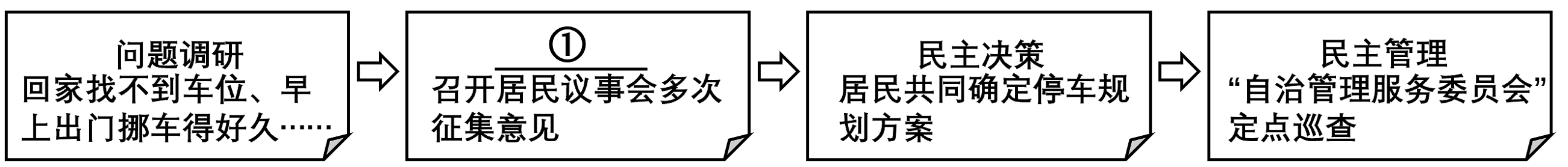 17、某社区为缓解停车难问题,不断创新治理模式,激发居民参与热情。本题____①____处应填写( )A、民主选举 B、民主协商 C、民主监督 D、民主法治