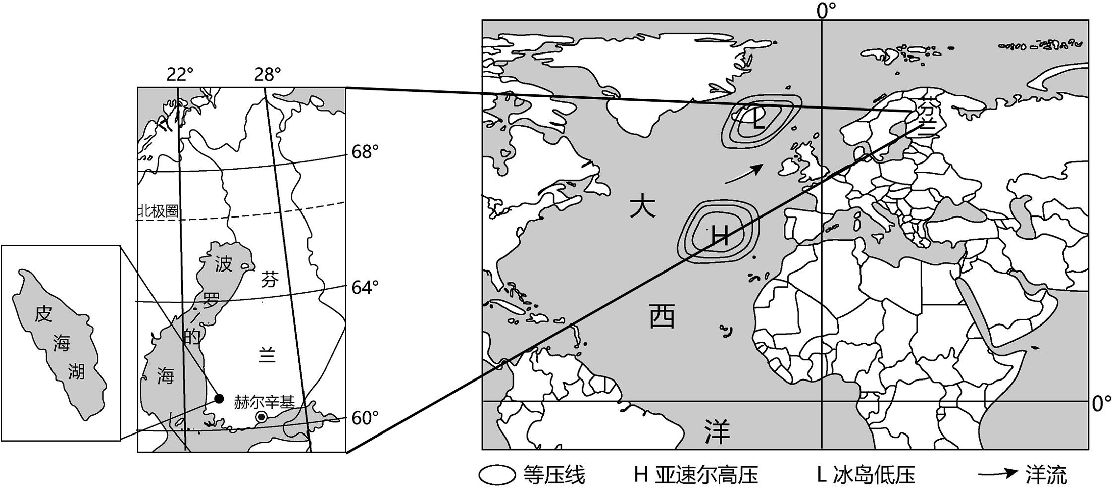 15、北大西洋涛动是指北大西洋上两个常年活动的气压中心之间气压差的变化过程,其涛动强度与两者之间的气压差呈正相关。欧洲西部的气候和水文特征受北大西洋涛动的影响显著,近年来,北大西洋涛动有所增强。下图为北大西洋常年活动的气压中心分布示意图及芬兰皮海湖位置略图。据此完成下面小题。(1)、北大西洋涛动增强则西欧气候变化趋向( )A、暖干 B、冷干 C、暖湿 D、冷湿(2)、位于芬兰西南部的皮海湖,近年来湖冰减少的原因可能有( )