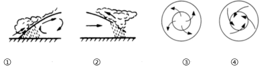 (1)、 29日至30日,绵阳城区( )A、气温降低,阴转阵雨 B、气温升高,阴转多云 C、气温升高,晴转阵雨 D、气温降低,雨转多云(2)、下图所示代表的四类天气系统,能够影响绵阳这次天气变化的是( )A、① B、② C、③ D、④ -