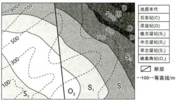 6、下图为某区域地质结构示意图,C~O3代表不同地质年代的地层。读图完成问题。(1)、甲地构造地貌为( )A、向斜山 B、背斜谷 C、背斜山 D、向斜谷(2)、图中断层形成于( )A、C地层之后 B、S1地层之前 C、S3地层之后 D、O3地层之前