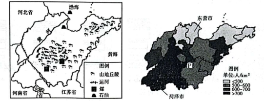 19、山东省是我国人口及经济大省,历史文化底蕴深厚。历史上黄河经常改道,每一次都会形成面积宏大的黄河泛滥区。下图为山东省地形图及某年人口密度图。读图,完成问题。(1)、东营市人口密度较小的原因是( )A、矿产资源匮乏 B、土地盐碱化严重 C、气候闷热潮湿 D、开发久,破坏严重(2)、与菏泽市相比,P处人口密度相对较低的主要影响因素是( )A、黄河改道 B、水源 C、地形 D、气候(3)、推测山东省内人口移动的主要方向是( )A、四周向中间移动 B、中间向四周移动 C、南部向北部沿海移动 D、西部向东部移动