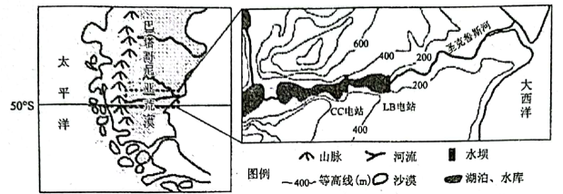 (1)、分析以荒漠为主的巴塔哥尼亚南部外流区域广布的原因。(2)、分析圣克鲁斯河中生物很少的原因。(3)、 LB水电站与CC水电站的坝址相距较远,说明这种设计方式对保证发电量的作用。(4)、简述孔拉水电站的建设对保障阿根廷国家能源安全的战略意义。 -