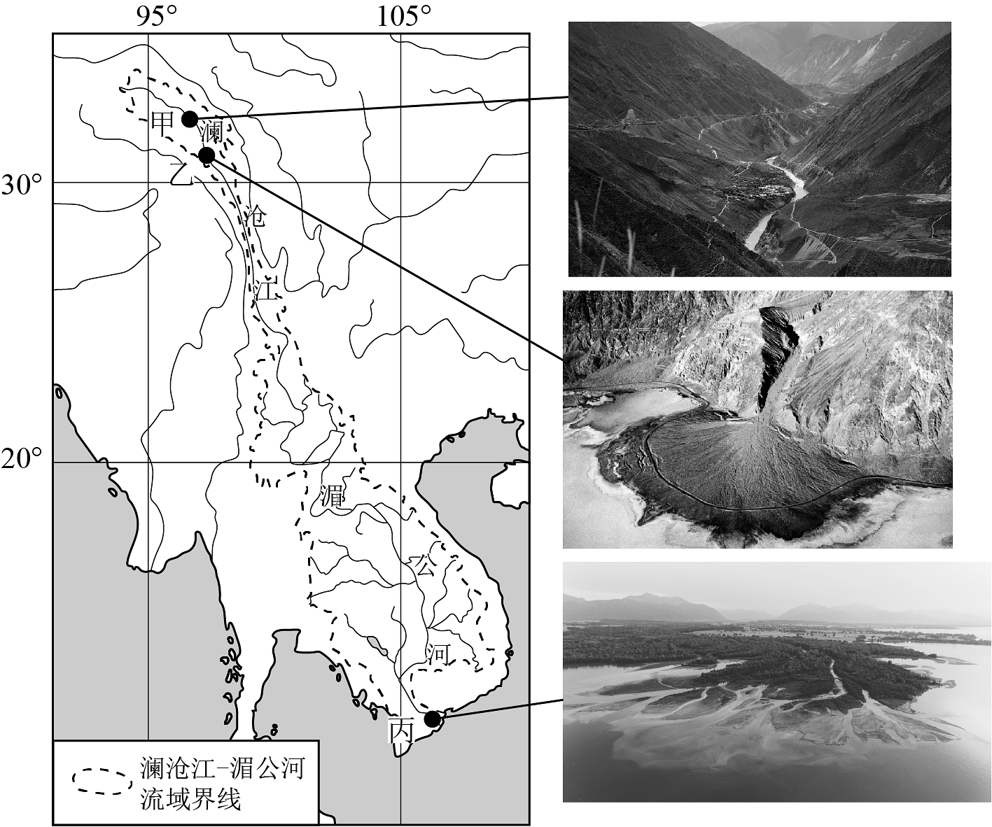(1)、甲、乙、丙处对应的地貌类型分别为、、。(2)、乙、丙两处地貌景观有一定差异,分布位置不同:乙分布于 , 丙分布于;沉积物颗粒粗细不同;乙沉积物颗粒 , 丙沉积物颗粒。 -