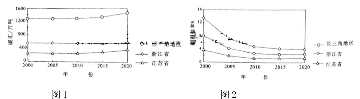 (1)、浙江省碳汇量较江苏省高,主要是因为浙江省( )A、产业碳排放量较低 B、能源利用效率较高 C、陆地水域面积较小 D、植被覆盖面积较广(2)、长三角地区碳补偿率持续下降表明区域内( )A、产业结构快速优化 B、碳汇能力持续增强 C、能源消耗增长较多 D、植被覆盖面积减少 -