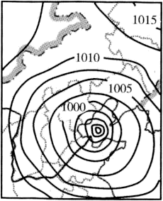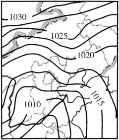 18、下图为某日北京市一则新闻。读图,完成下面小题。(1)、下列选项与新闻中天气现象最吻合的天气形势图(图中数值为气压值,单位hpa)为( )A、