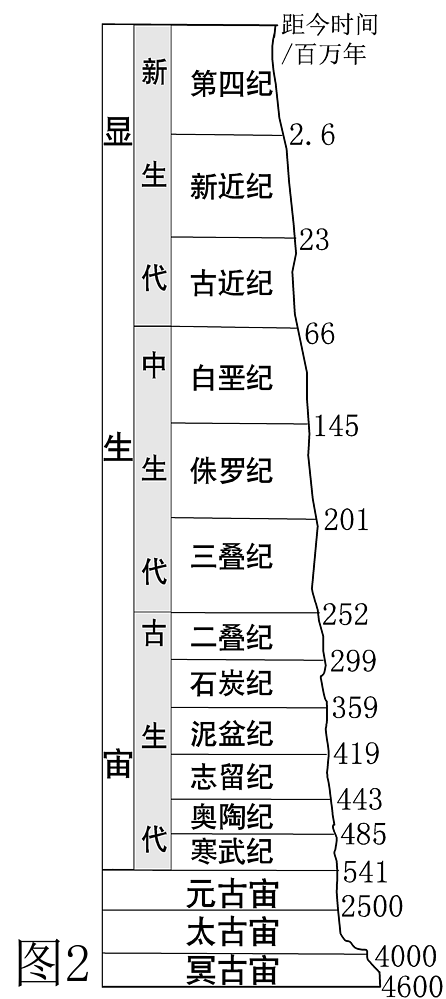 14、叠层石中记录了地球早期的生命之一的蓝细菌(最早的光合放氧菌)生活的“足迹”。蓝细菌在生长过程中能黏附海水中细小的沉积物,当沉积物增多时,蓝细菌需要移动到表层寻找光源进行代谢。这样,沉积物一层一层地堆积形成叠层石。图1为2016年在陵兰岛发现的叠层石(年龄约37亿年),图2为地质年代表。读图完成下面小题。(1)、该叠层石的发现,使科学家对生命起源的研究可追溯到( )A、冥古宙 B、太古宙 C、寒武纪 D、二叠纪(2)、研究显示,距今25亿年为蓝细菌繁盛时期。由此推测,此后地球的( )A、海洋更加广阔 B、陆地普遍抬升 C、温度逐渐升高 D、大气变得富氧(3)、按由老到新的年代顺序,下列排序正确的是( )A、三叶虫—鱼类—恐龙 B、蕨类植物—被子植物—裸子植物 C、新生代—中生代—古生代 D、哺乳动物—爬行动物—两栖动物