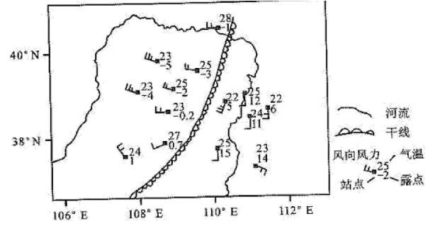 2、干线是指两个温度相近的干、湿气团相遇所形成的锋。露点是空气固冷却而达到饱和时的温度,其数值越大,反映空气中水汽含量越大。研究表明,河套平原及其周边地区成为我国干线发育的典型地区,当地干线发展过程中易诱发强烈的天气现象。如图为“河套平原及周边地区某时刻干线示意图”。完成下面小题。(1)、图示时刻,干线东西两侧的气团性质差异主要表现为( )A、东侧暖湿,西侧冷干 B、东侧暖干,西侧冷湿 C、东侧暖湿,西侧暖干 D、东侧暖干,西侧暖湿(2)、一般情况下,温度相同时,湿空气要比干空气密度小。据此推测干线发育过程中易出现的天气现象是( )A、扬尘 B、大风 C、晴朗 D、降水