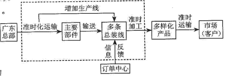 7、广东T集团是一家研发和生产消费电子产品的企业,2004年在欧盟成员国波兰(享受关税减免政策)投资建立生产基地,生产的零部件大部分来自中国,产品销往欧洲。2016年,T集团选择了实现准时化运输的中欧班列,摒弃了传统海运,开始采用“即时生产”的组织形式(如图),完成了生产方式的变革。完成下面小题。(1)、2004年,T集团选择在波兰建设生产基地的主要原因是( )A、提高生产效率 B、降低运输成本 C、避开关税壁垒 D、增加当地就业(2)、2016年以前,T集团在波兰的生产规模主要受制于( )A、劳动力成本高 B、市场需求不足 C、主要部件缺乏 D、库存积压量大(3)、与传统生产方式相比,T集团生产方式的变革实现了( )A、提升服务质量 B、快速响应市场 C、增加产品性能 D、降低研发成本