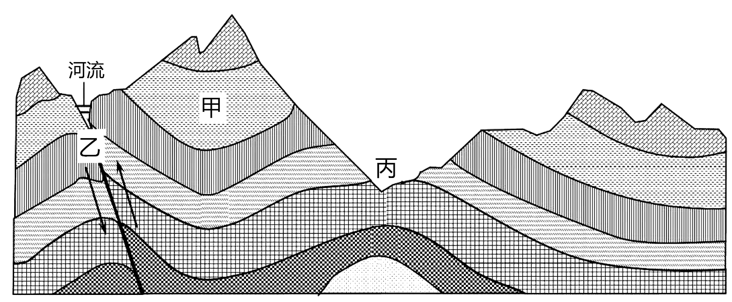 (1)、推测甲地地质构造类型的成因(2)、推测乙、丙两处谷地成因是否相同? 请判断并说明理由。(3)、计划在该地区修建地下隧道,应选在甲、乙、丙三处中的哪一处? 请选择并说明理由。 -